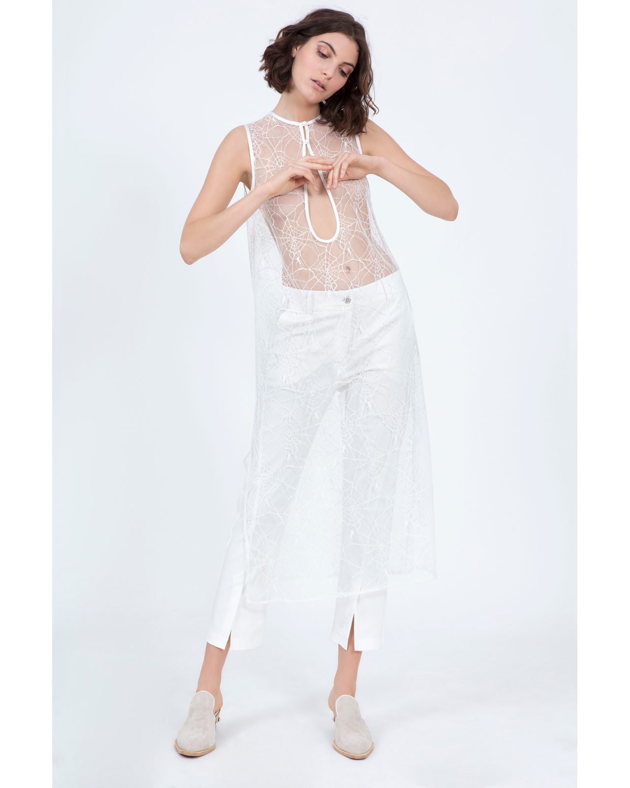 Κρουαζέ Άσπρη Διάφανη Πουκαμίσα Κιμονό