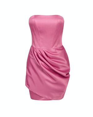 Bandeau σατέν μίνι φόρεμα ροζ πλήρως φοδραρισμένο.