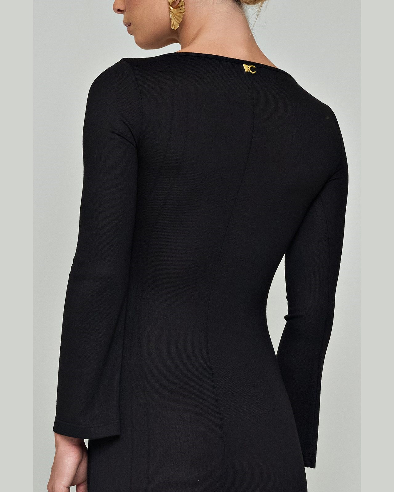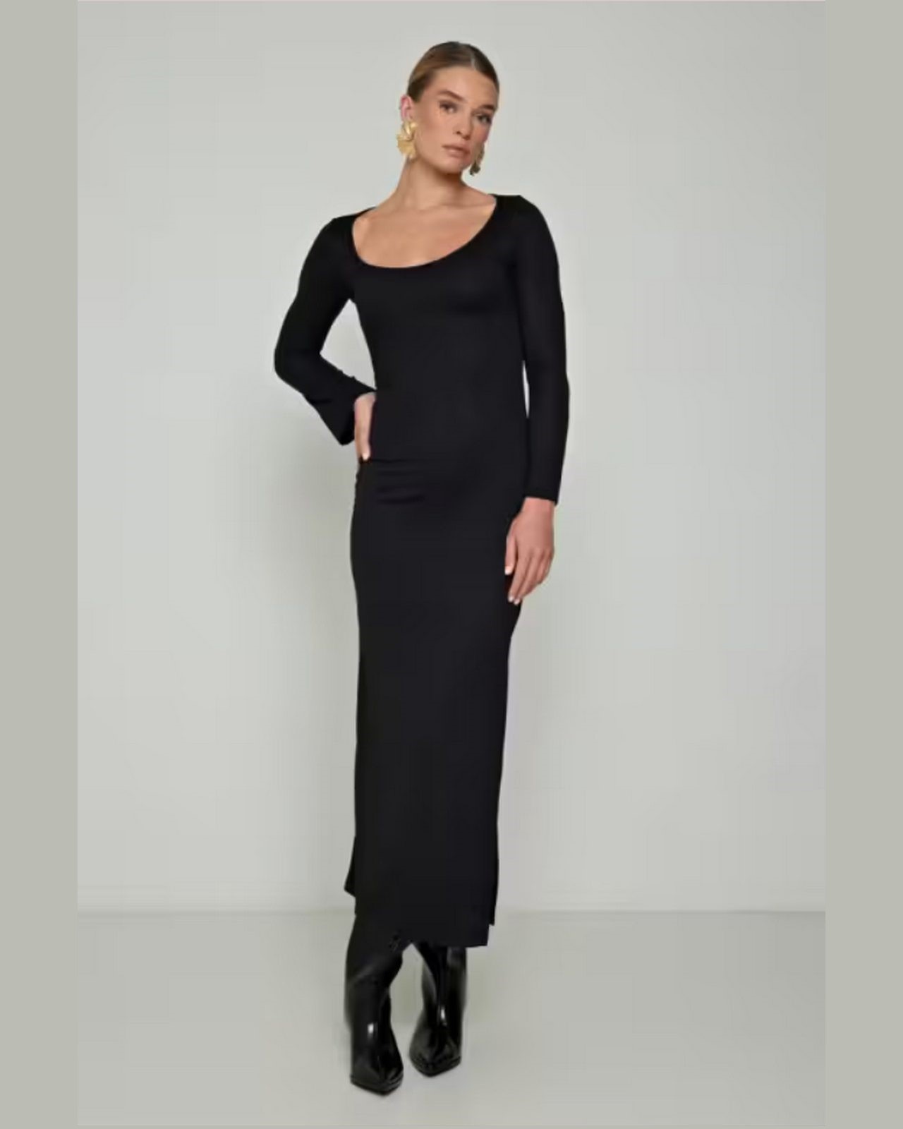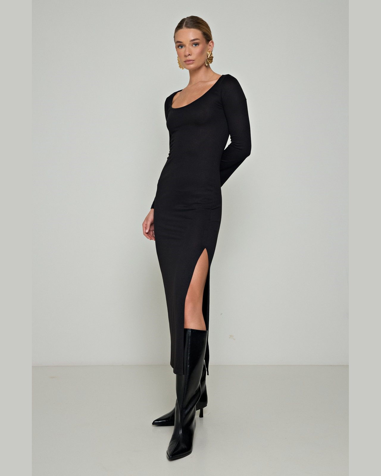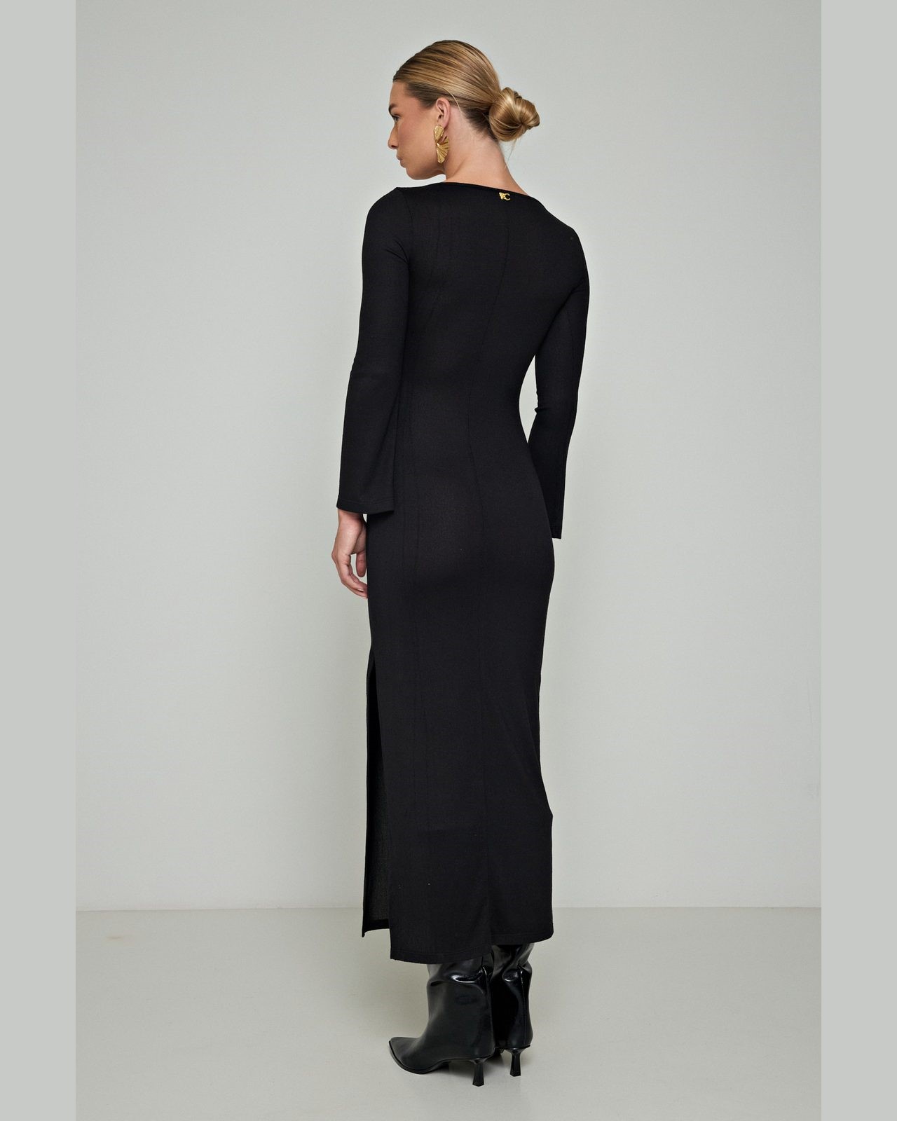 Φόρεμα πλεκτό μάξι σε ίσια γραμμή με σκίσιμο στην αριστερή πλευρά.