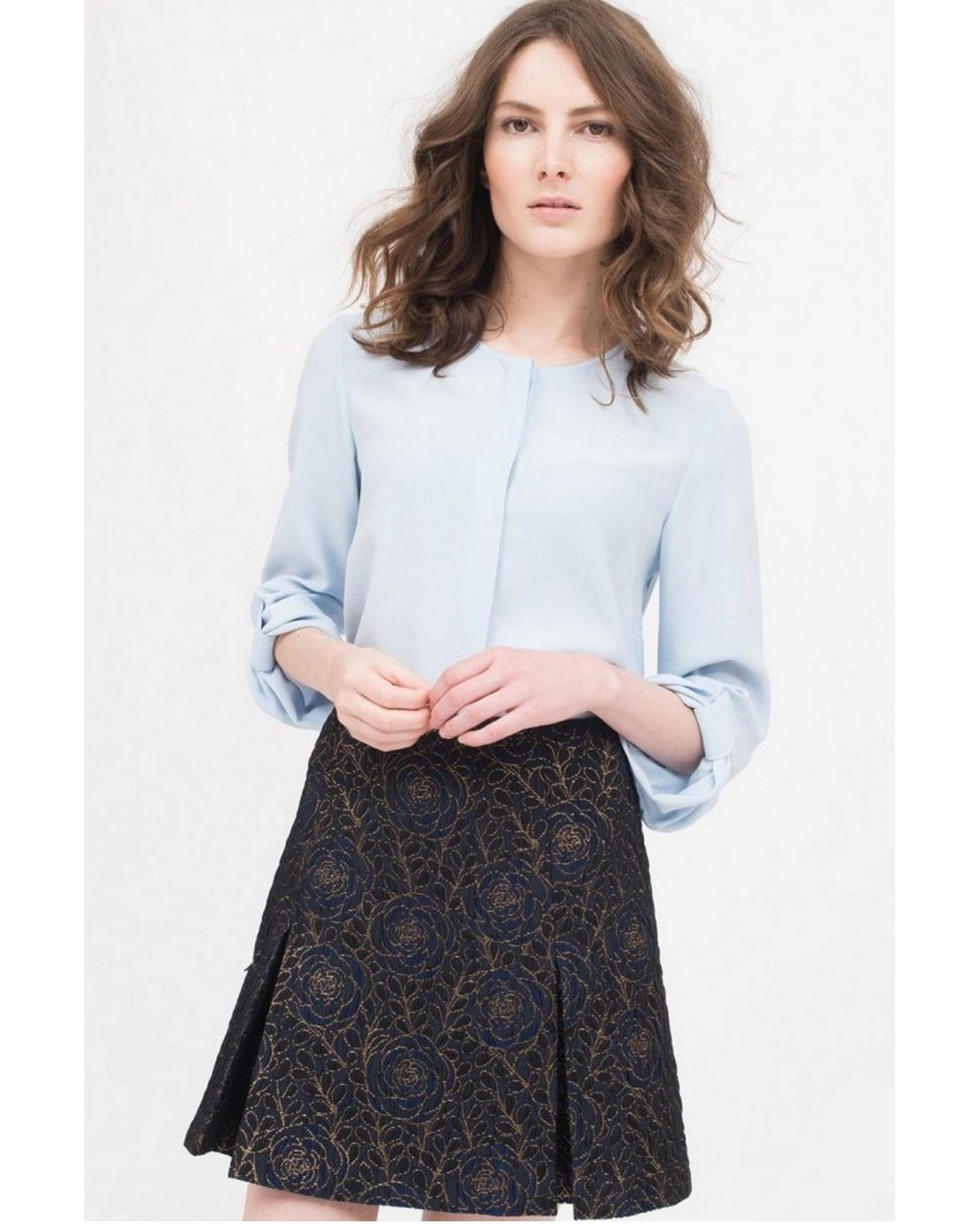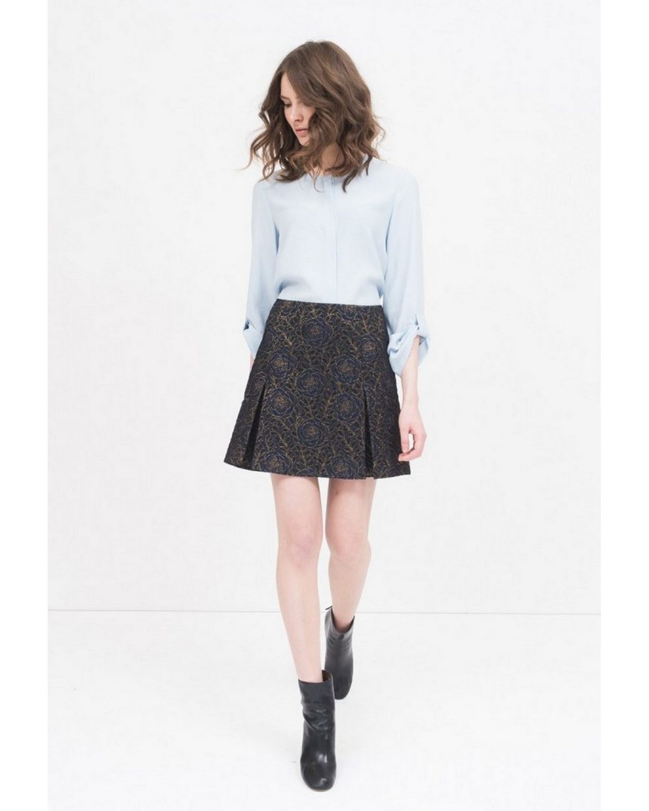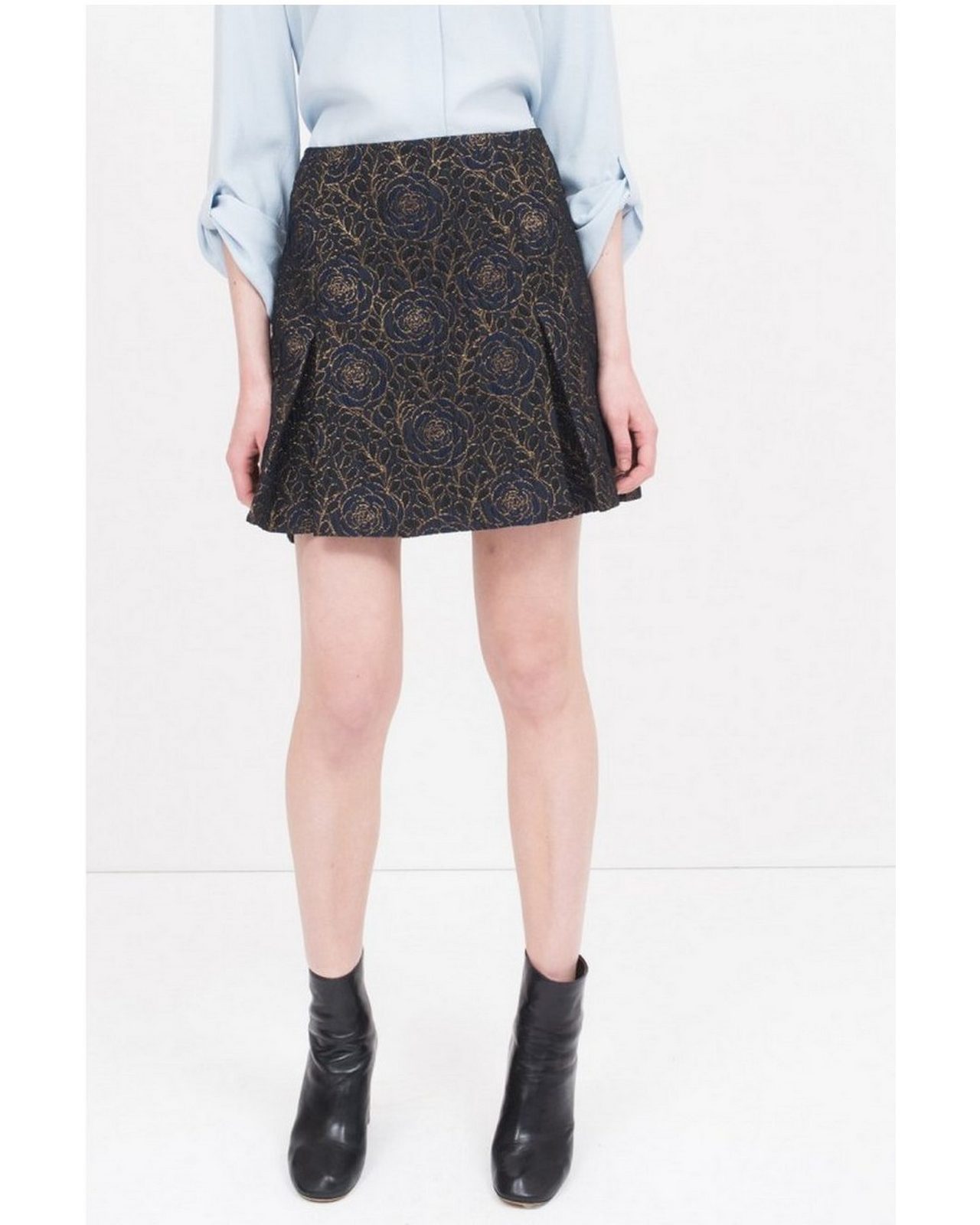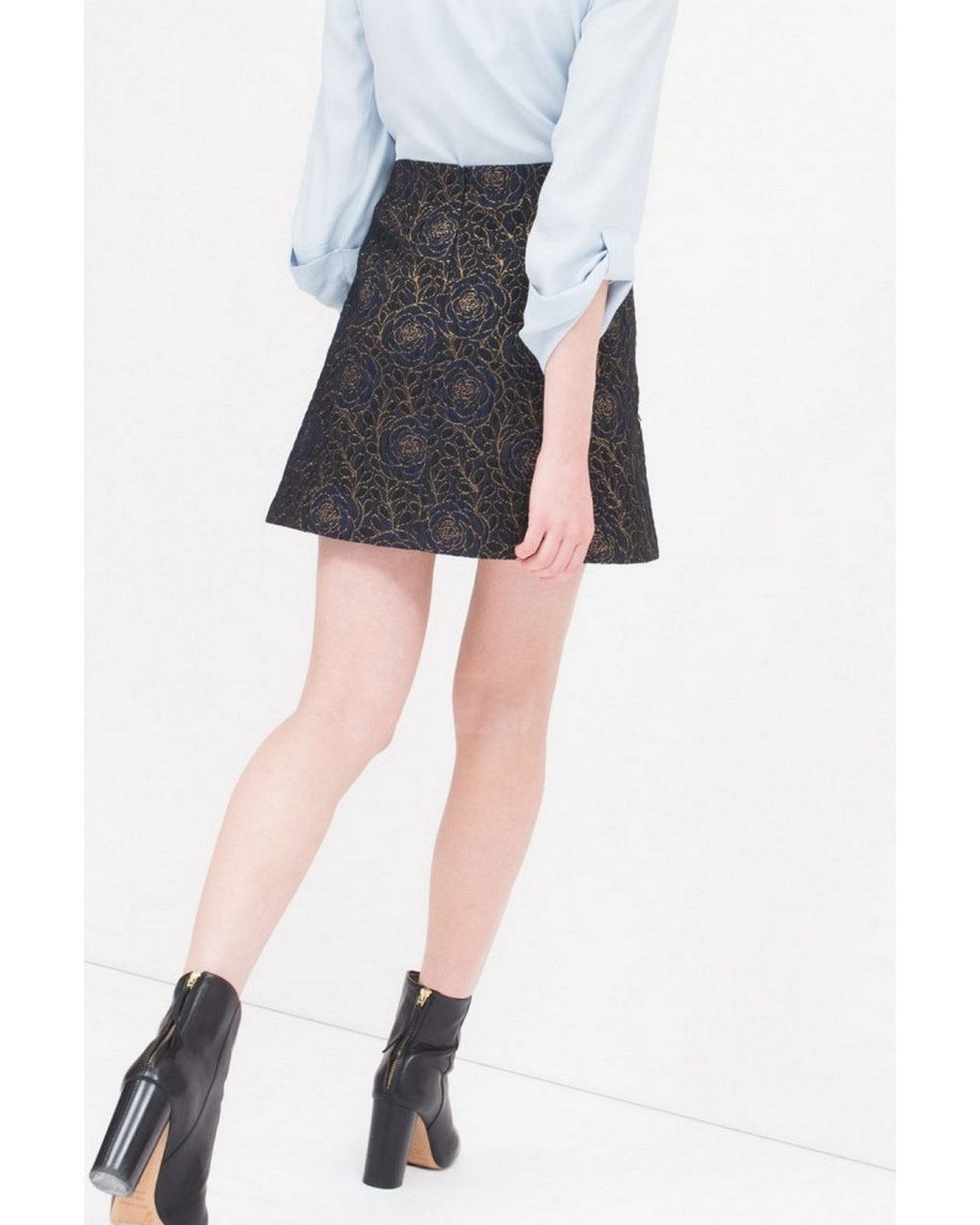 Κοντή φούστα μπλε με χρυσά λουλούδια στη ύφανση.