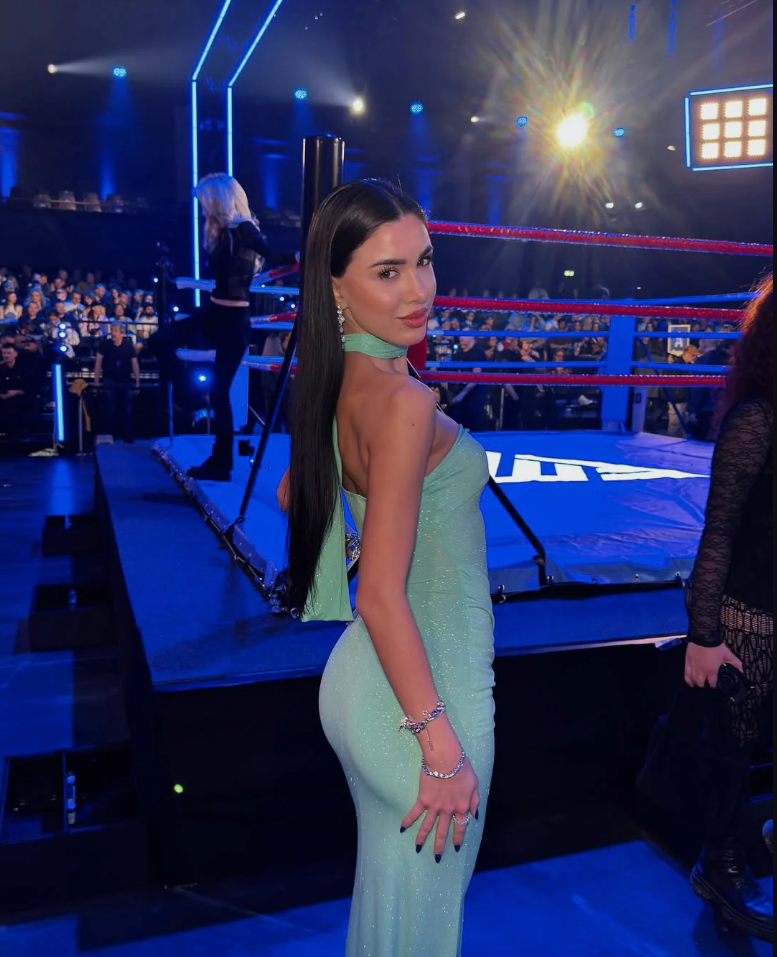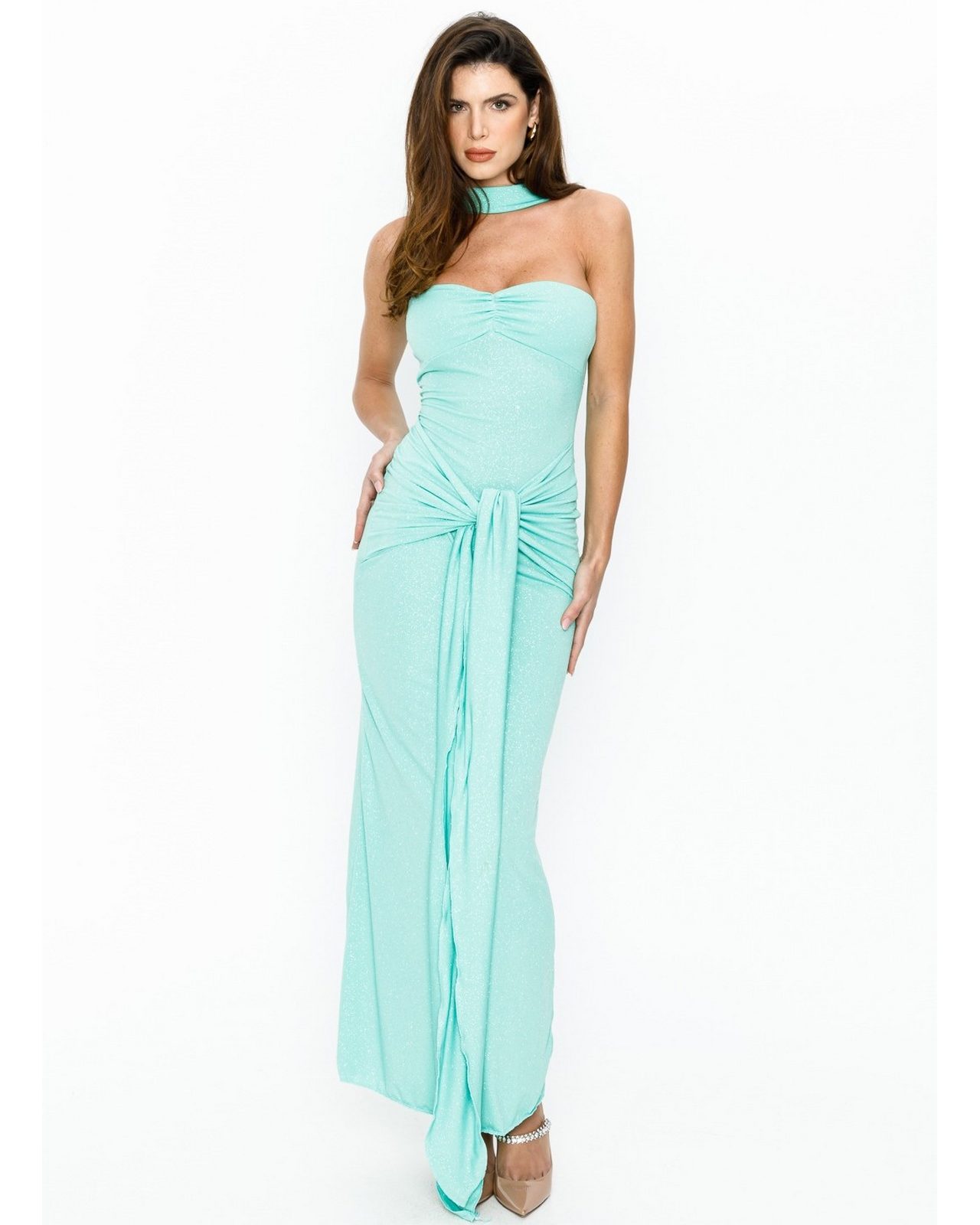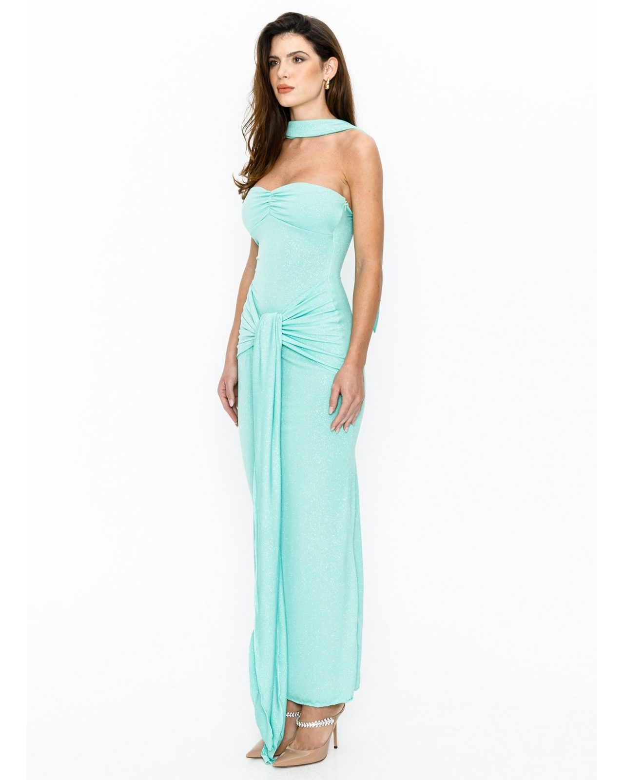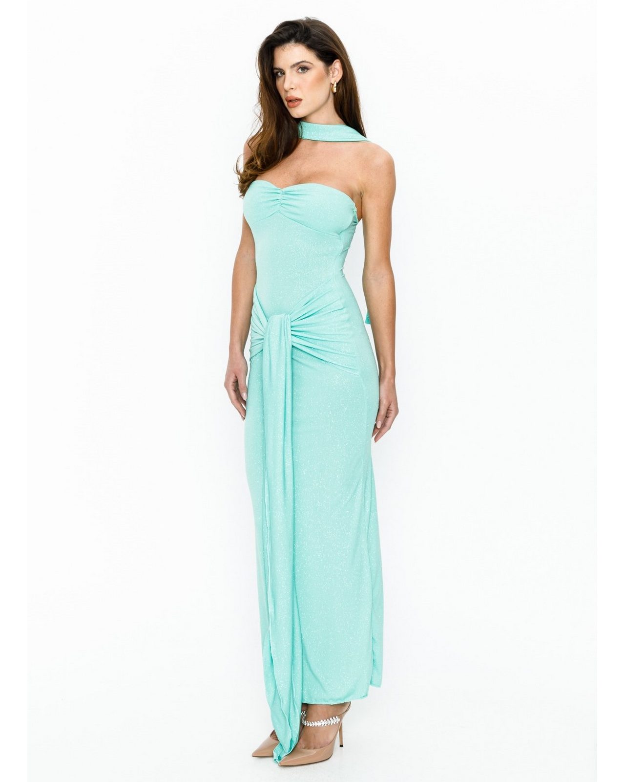 Mariella βεραμάν ντραπέ φόρεμα από ύφασμα spandex πολύ ελαστικό με glitter και εσάρπα – φουλάρι στον λαιμό.
