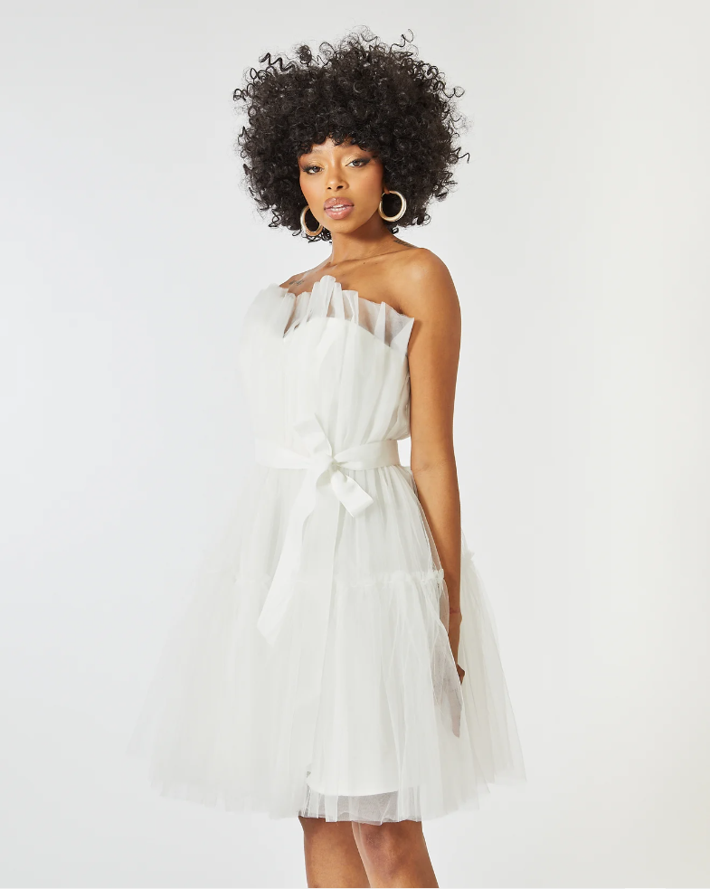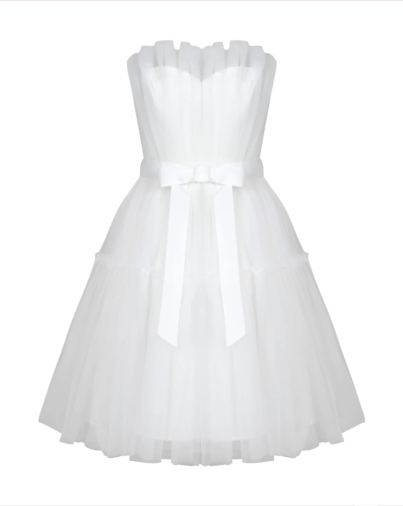 Μίνι φόρεμα από άσπρο τούλι με ζώνη στην μέση.