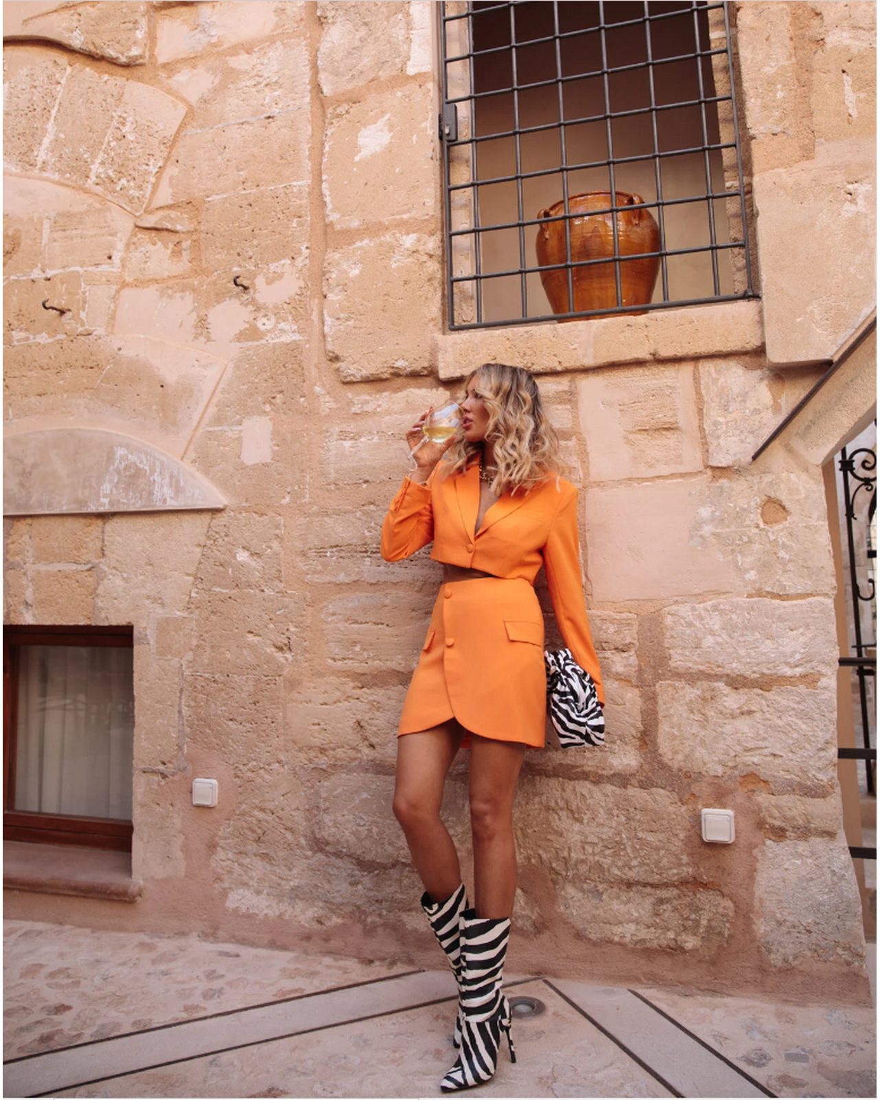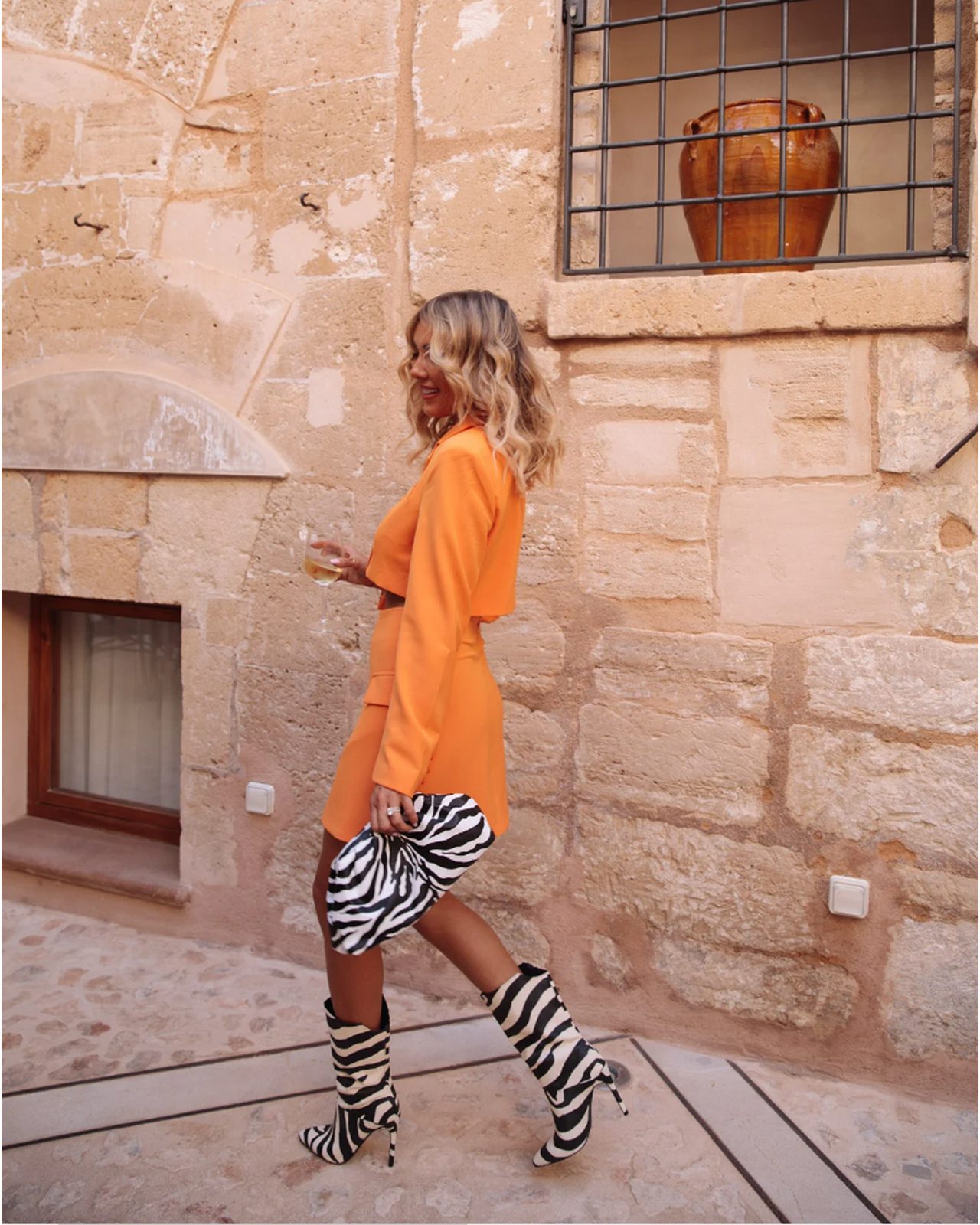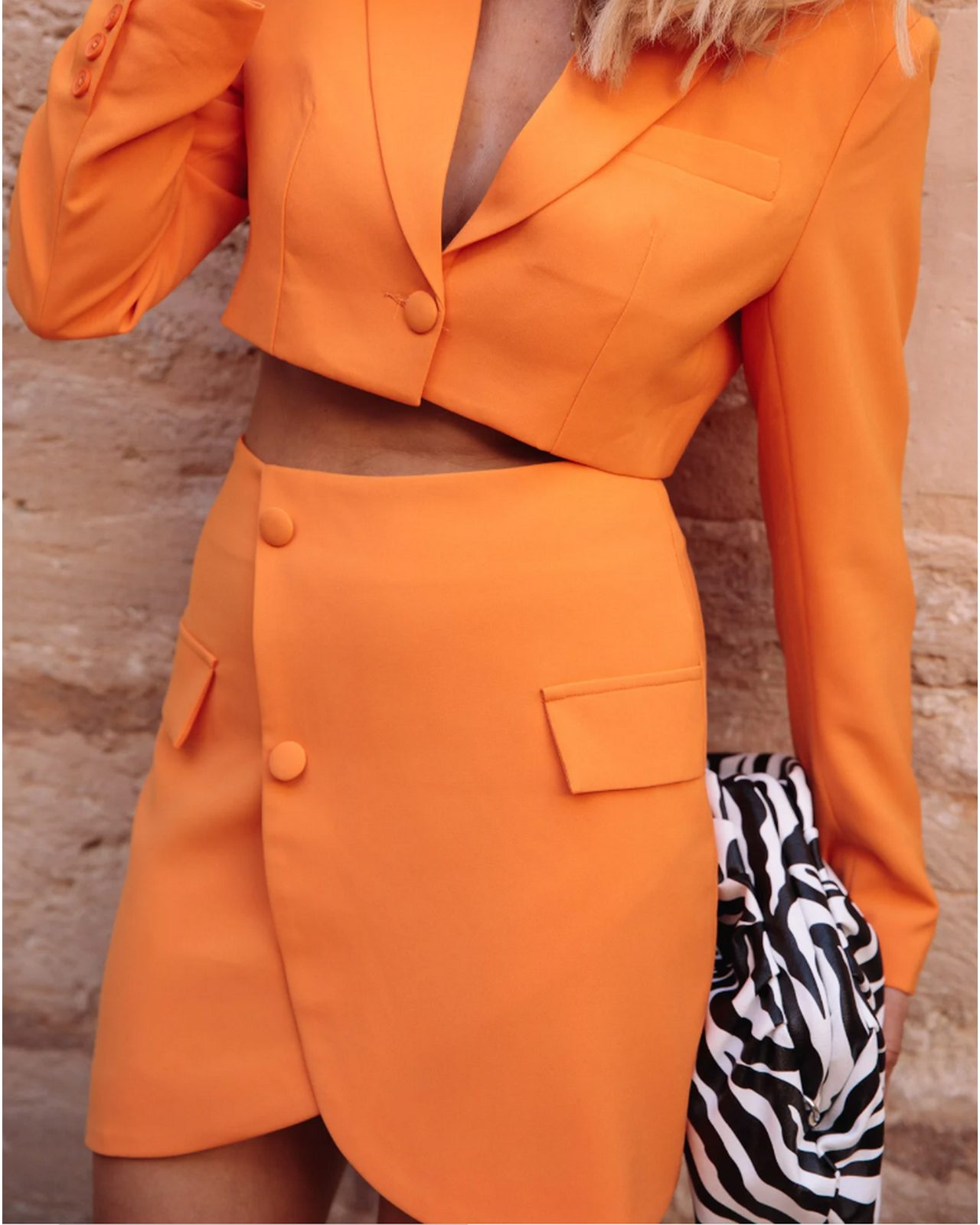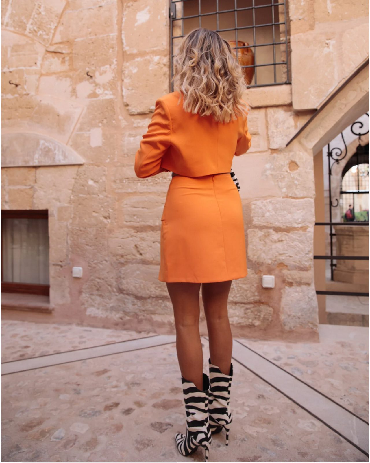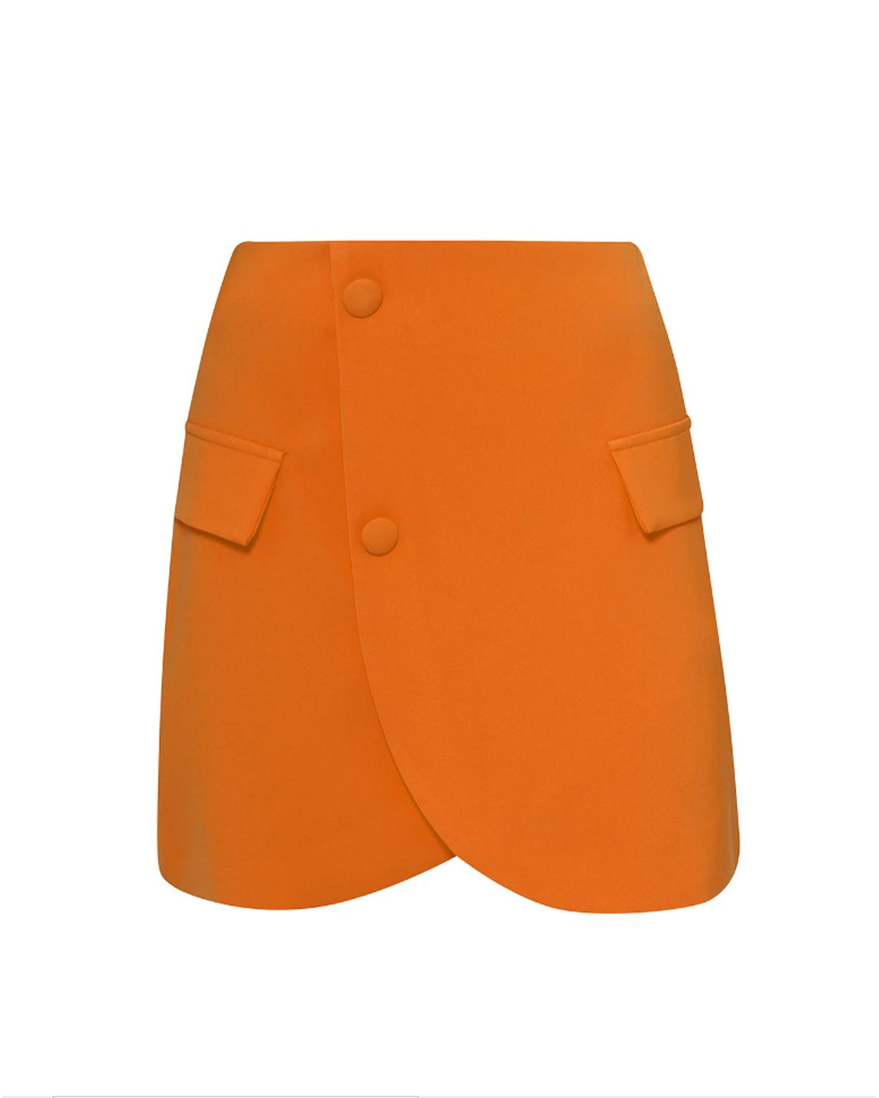 Μίνι φούστα πορτοκαλί σε γραμμή Α ,ελλειπτική μπροστά.