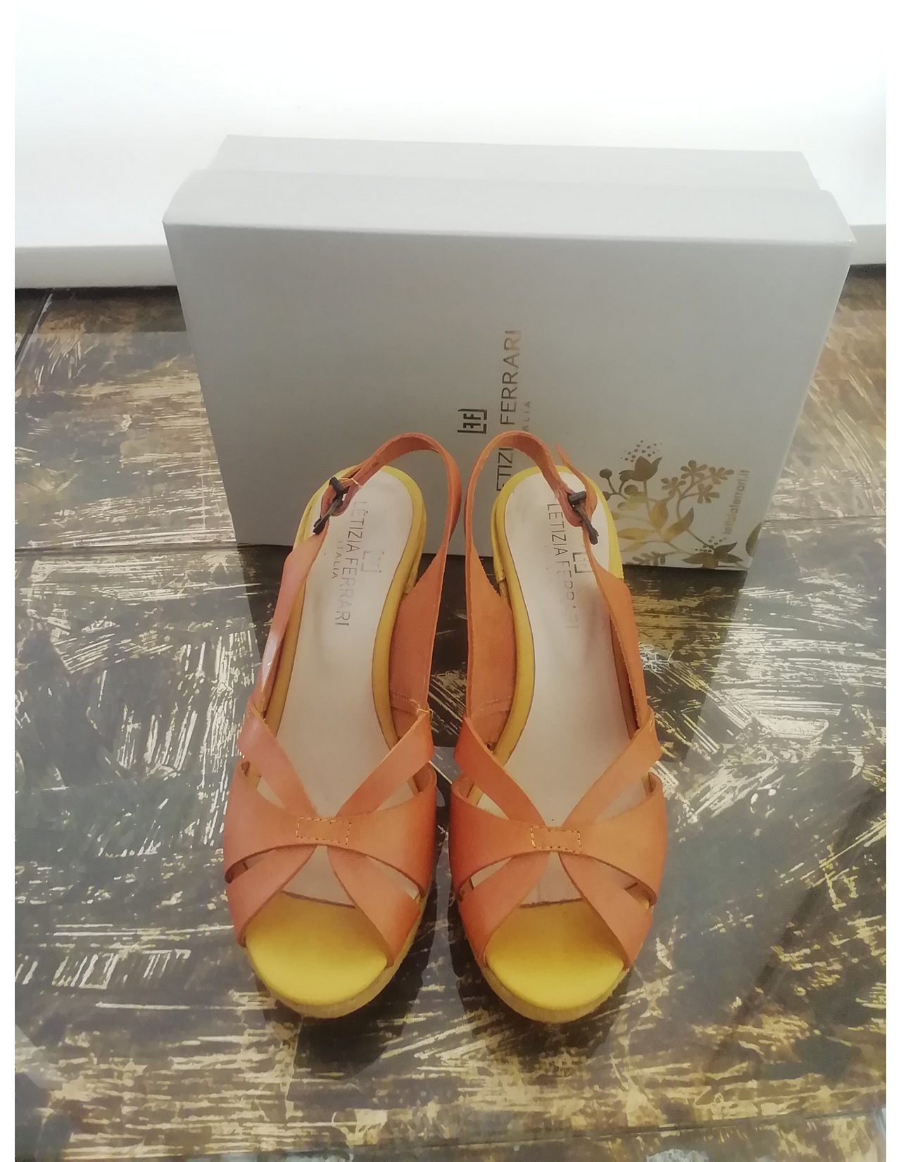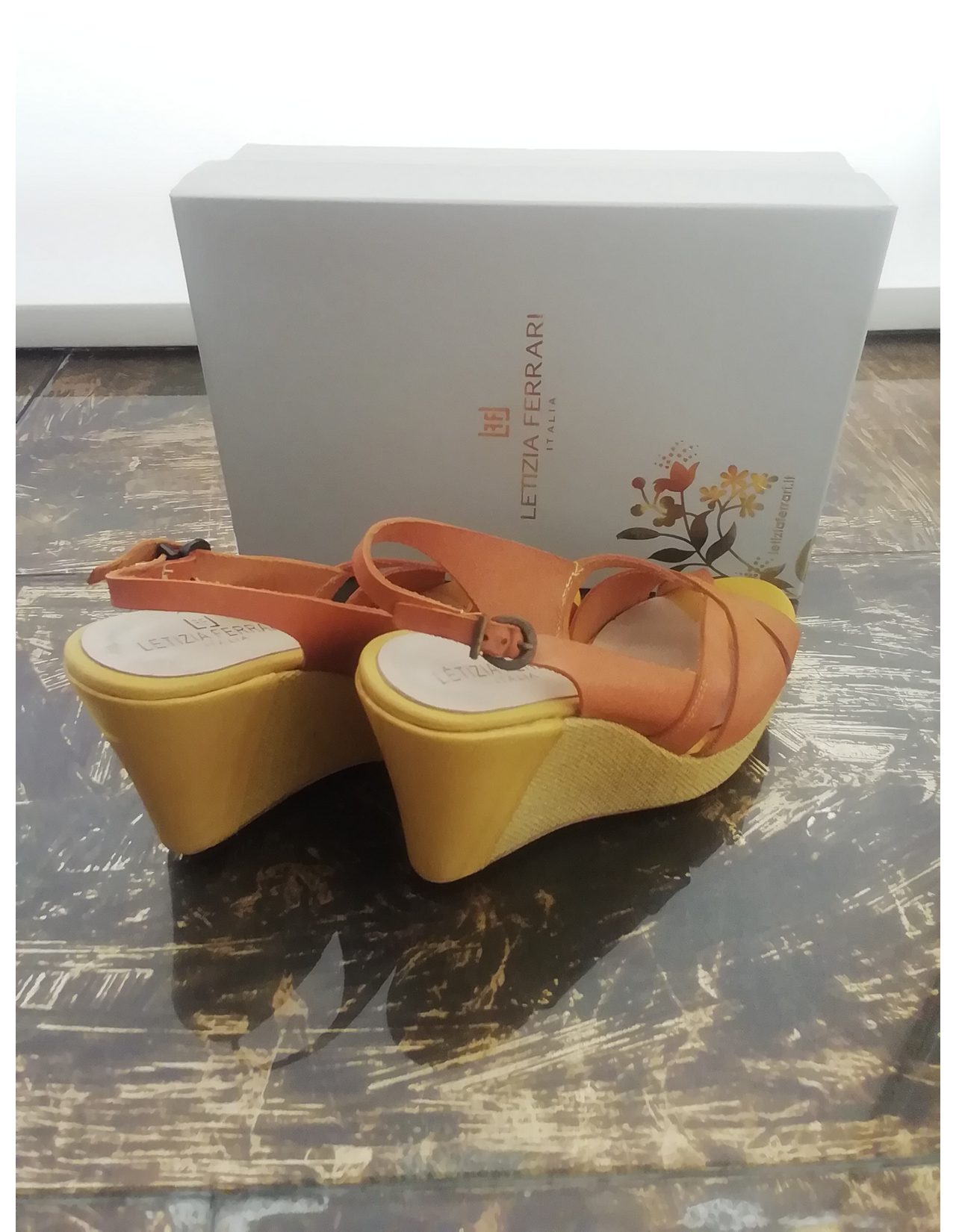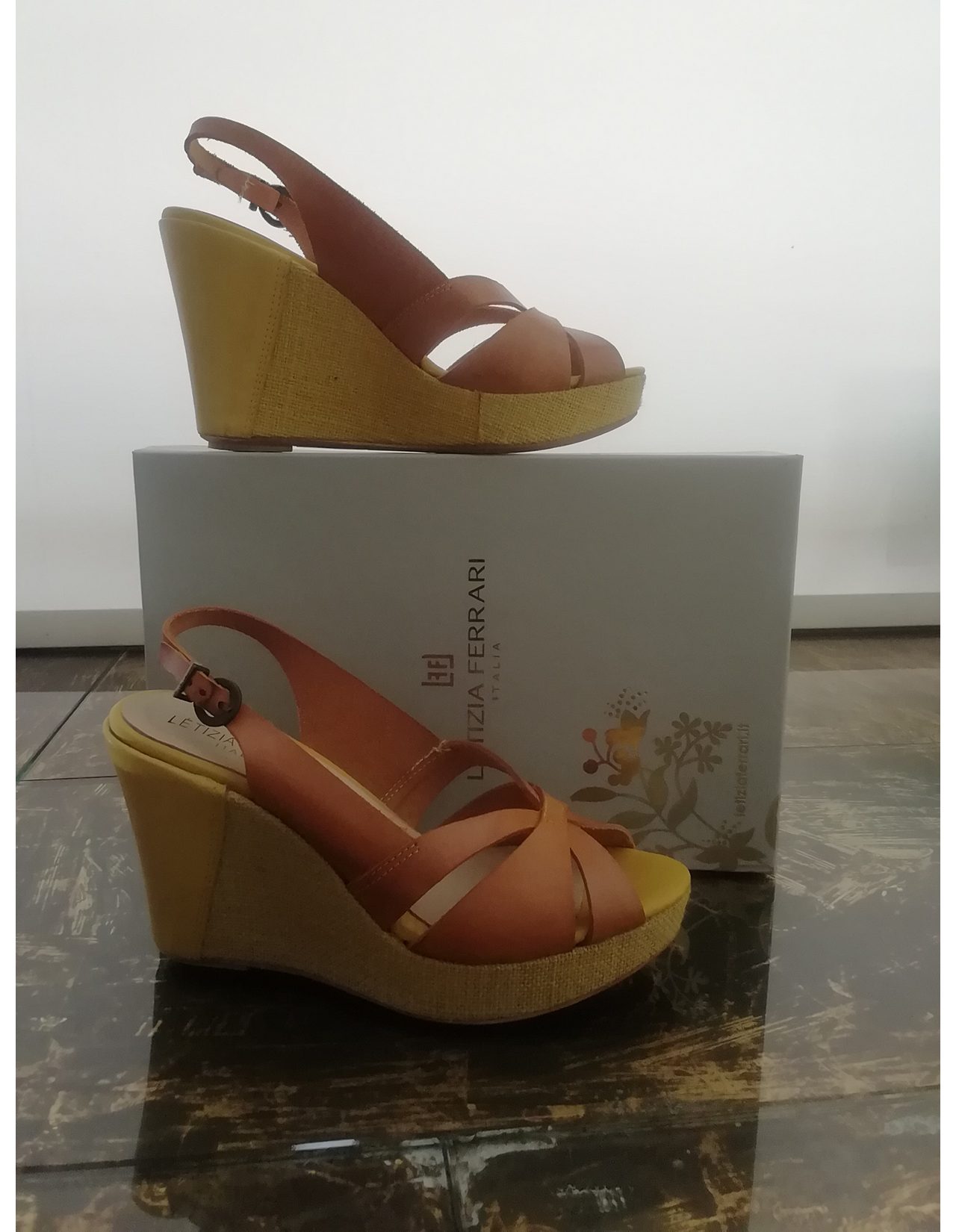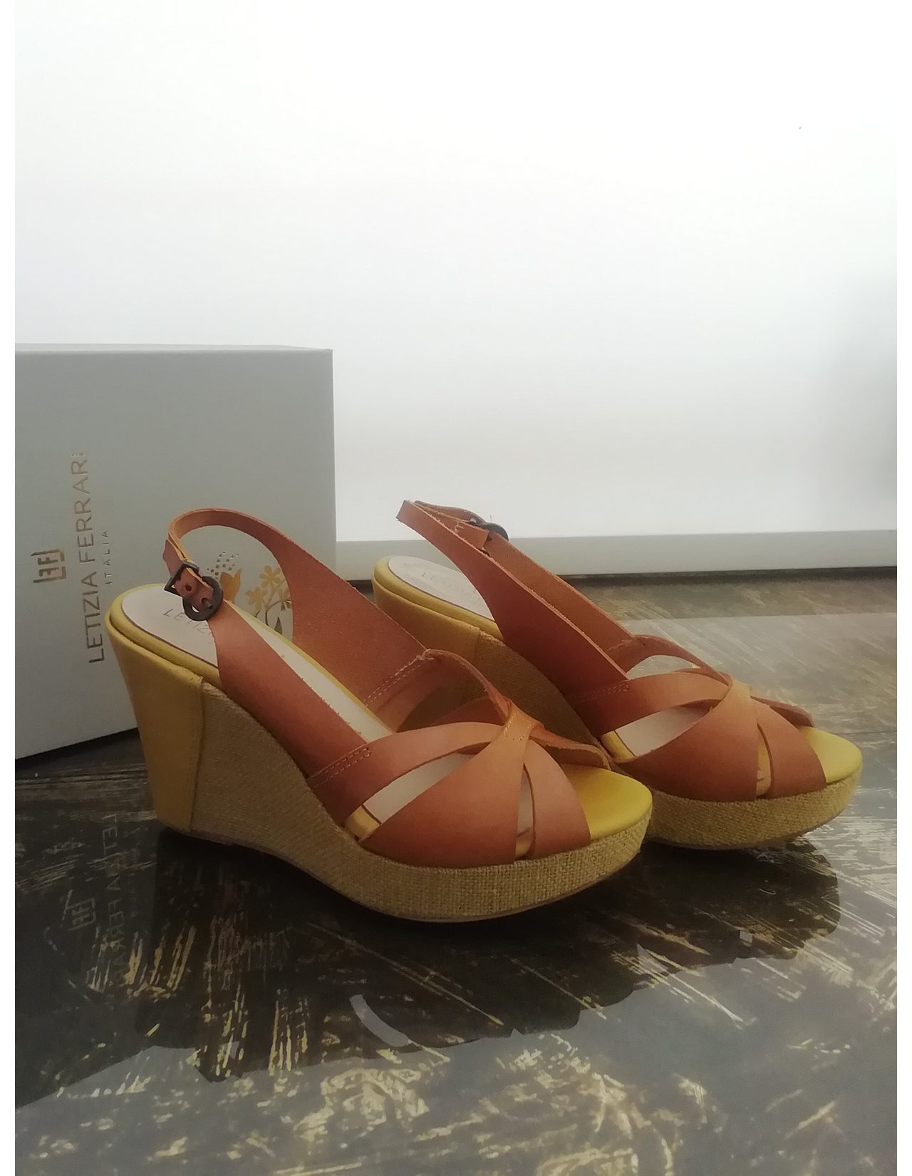 Δερμάτινη πλατφόρμα με κίτρινη βάση και ταμπά το πάνω μέρος.