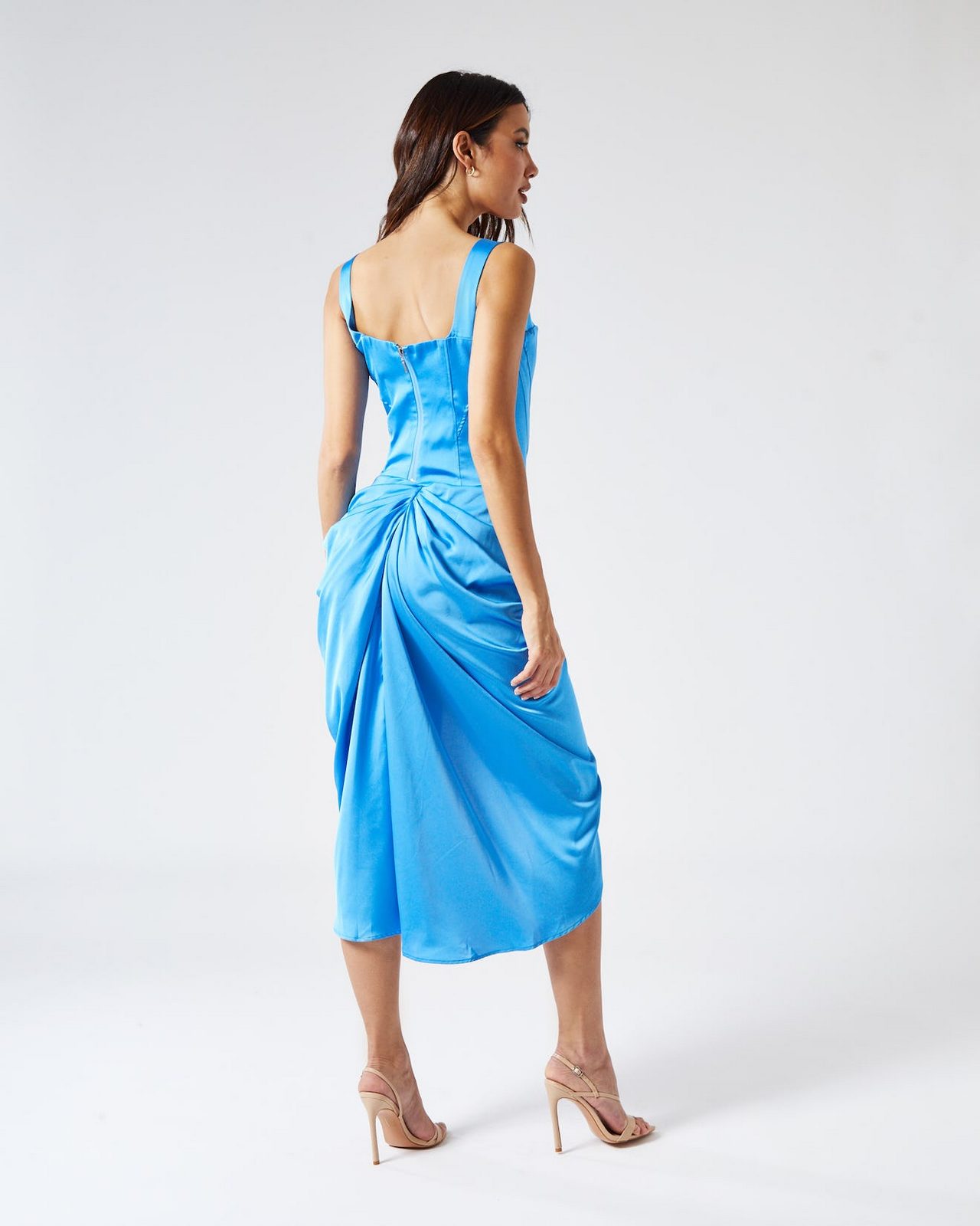Ντραπέ μπροστά και πίσω με άνοιγμα στο πόδι και κρυφό κεντρικό φερμουάρ στο πίσω μέρος της φούστας.