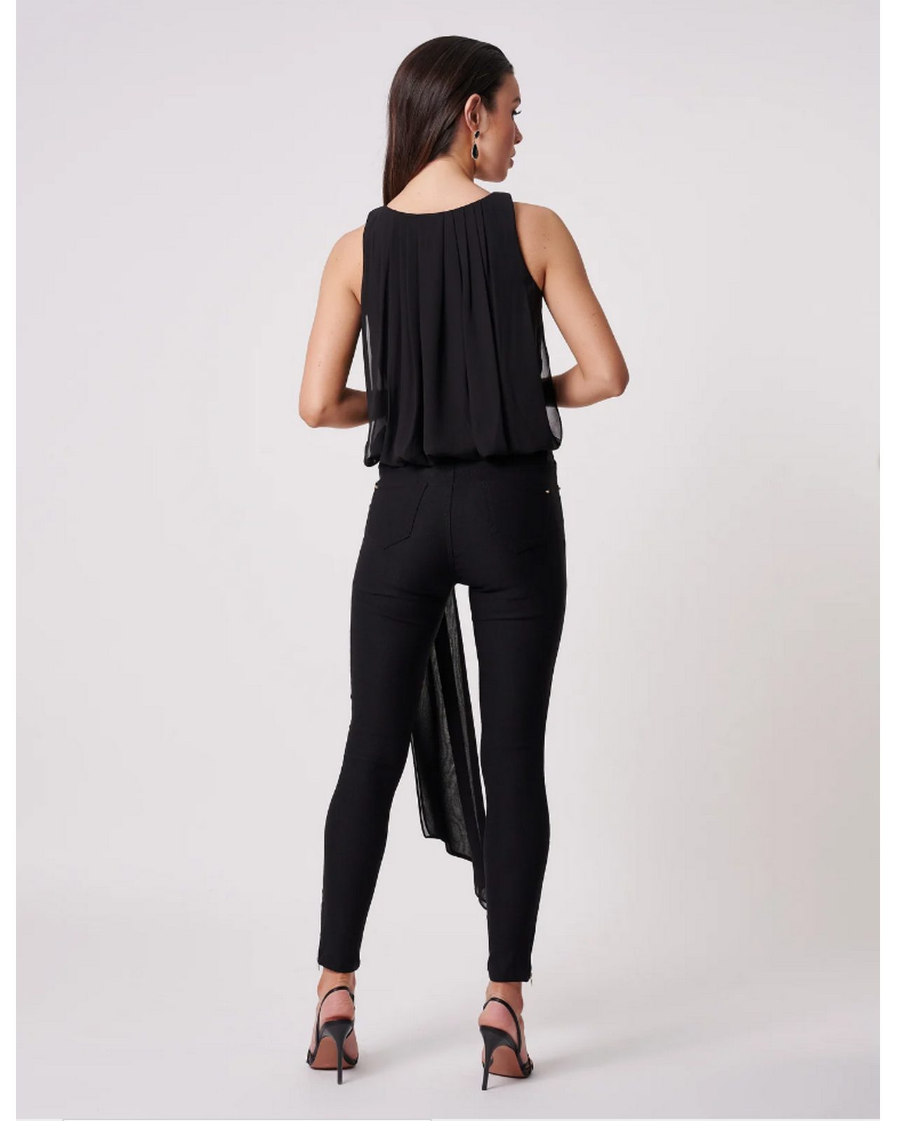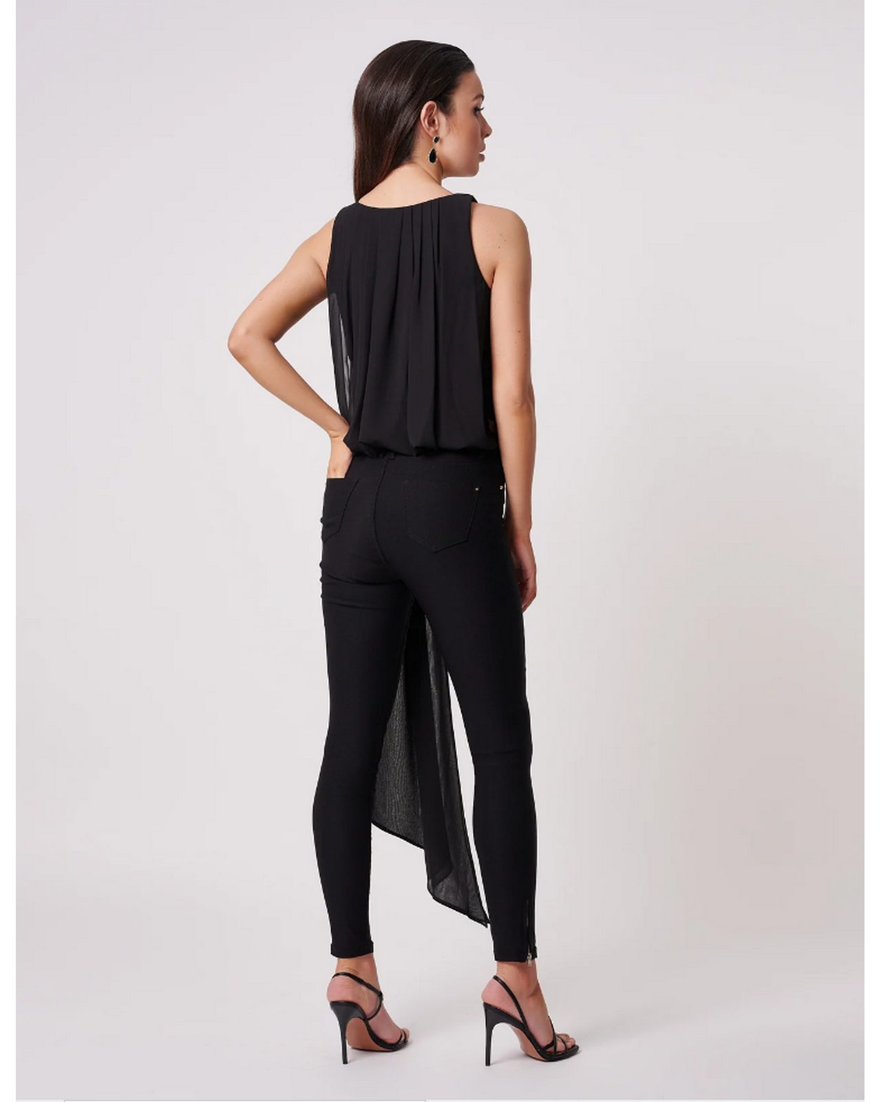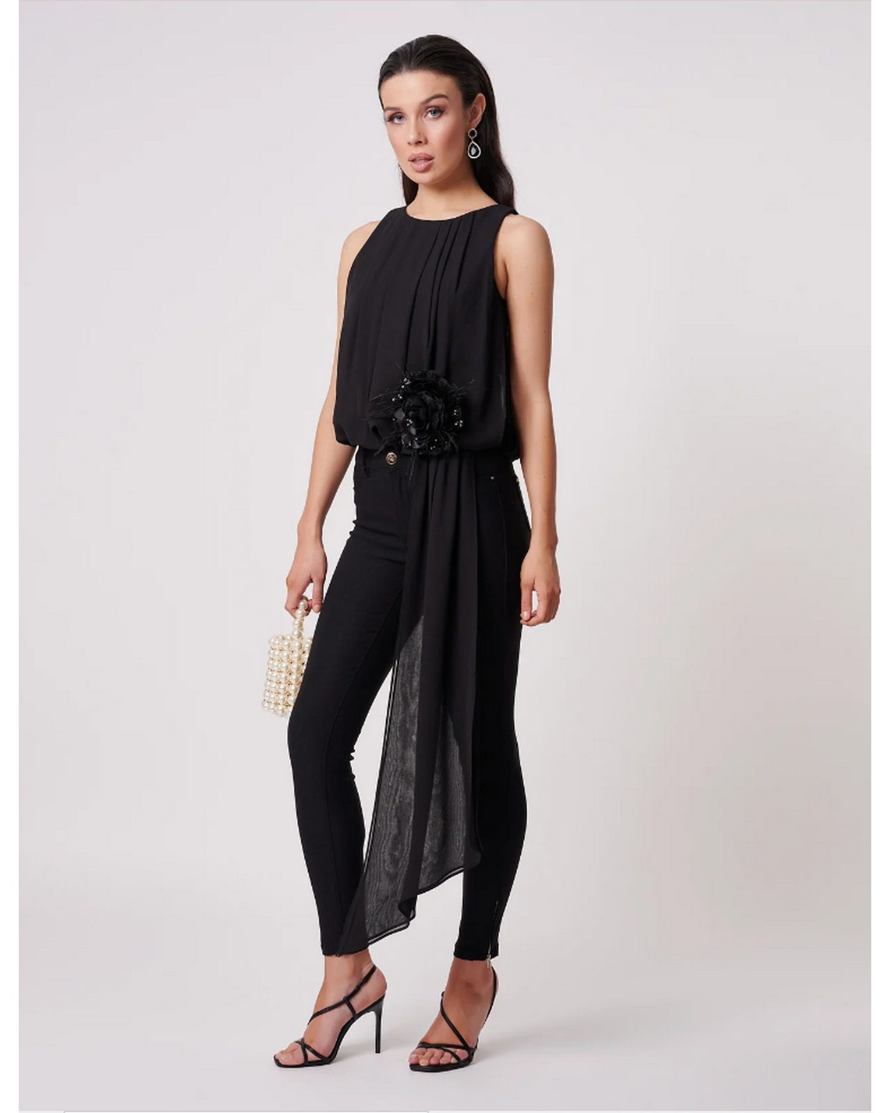 Μαύρο τόπ με αποσπώμενο λουλούδι με παγέτες και φτερά ,κλείνει με πλαινό φερμουάρ.
